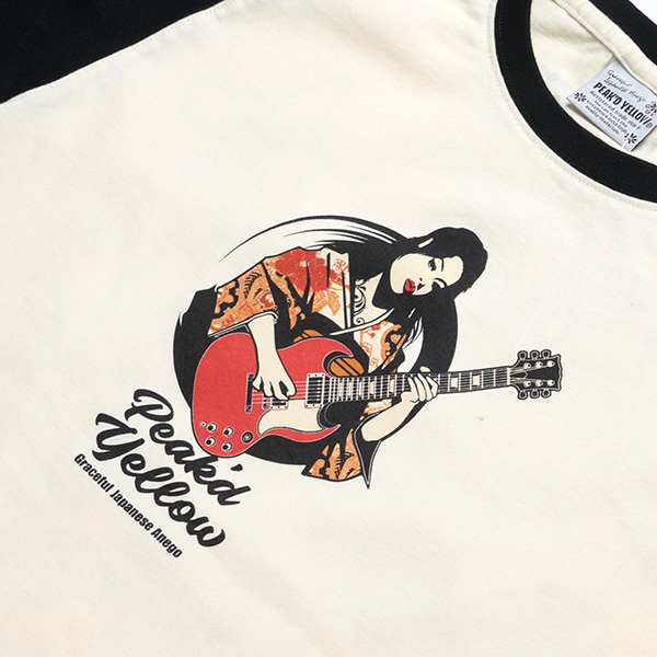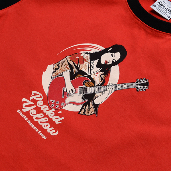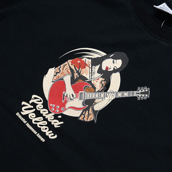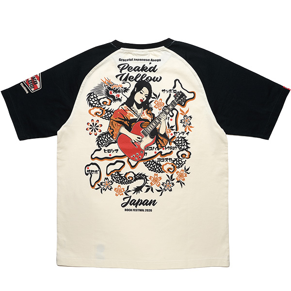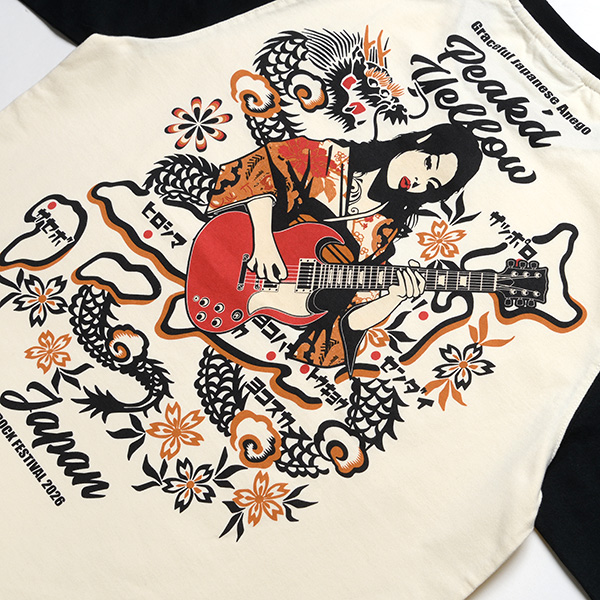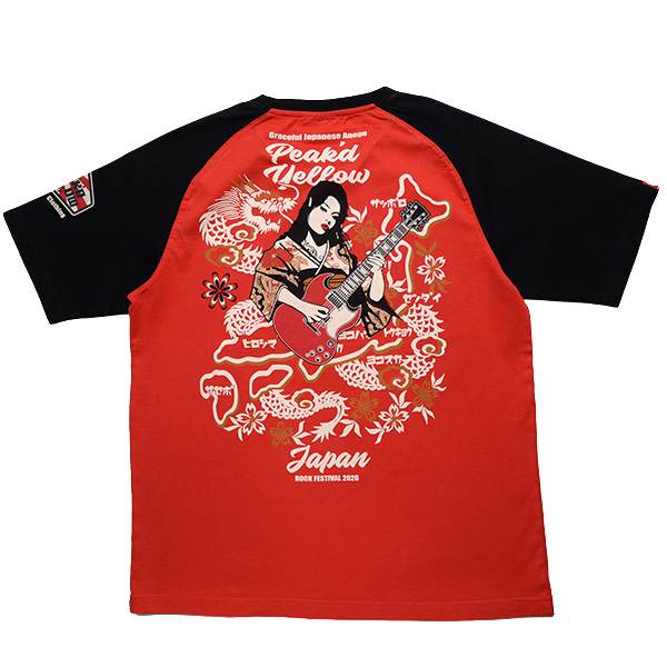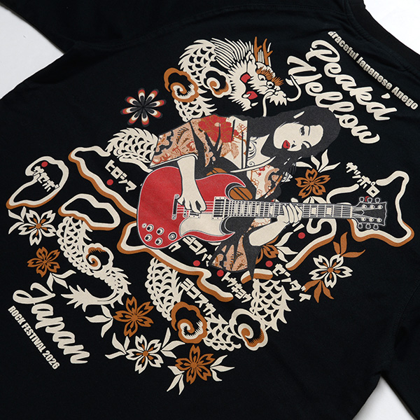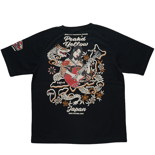 ギターを持った姐御と日本地図のデザインがマッチしたロックフェスTEE。